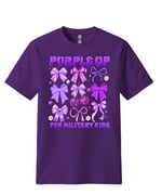 Add a playful touch to your support with this adorable bow-themed design. Featuring multiple purple bows and decorative elements, this shirt is perfect for kids or anyone who loves a cute and spirited look while honoring military families.