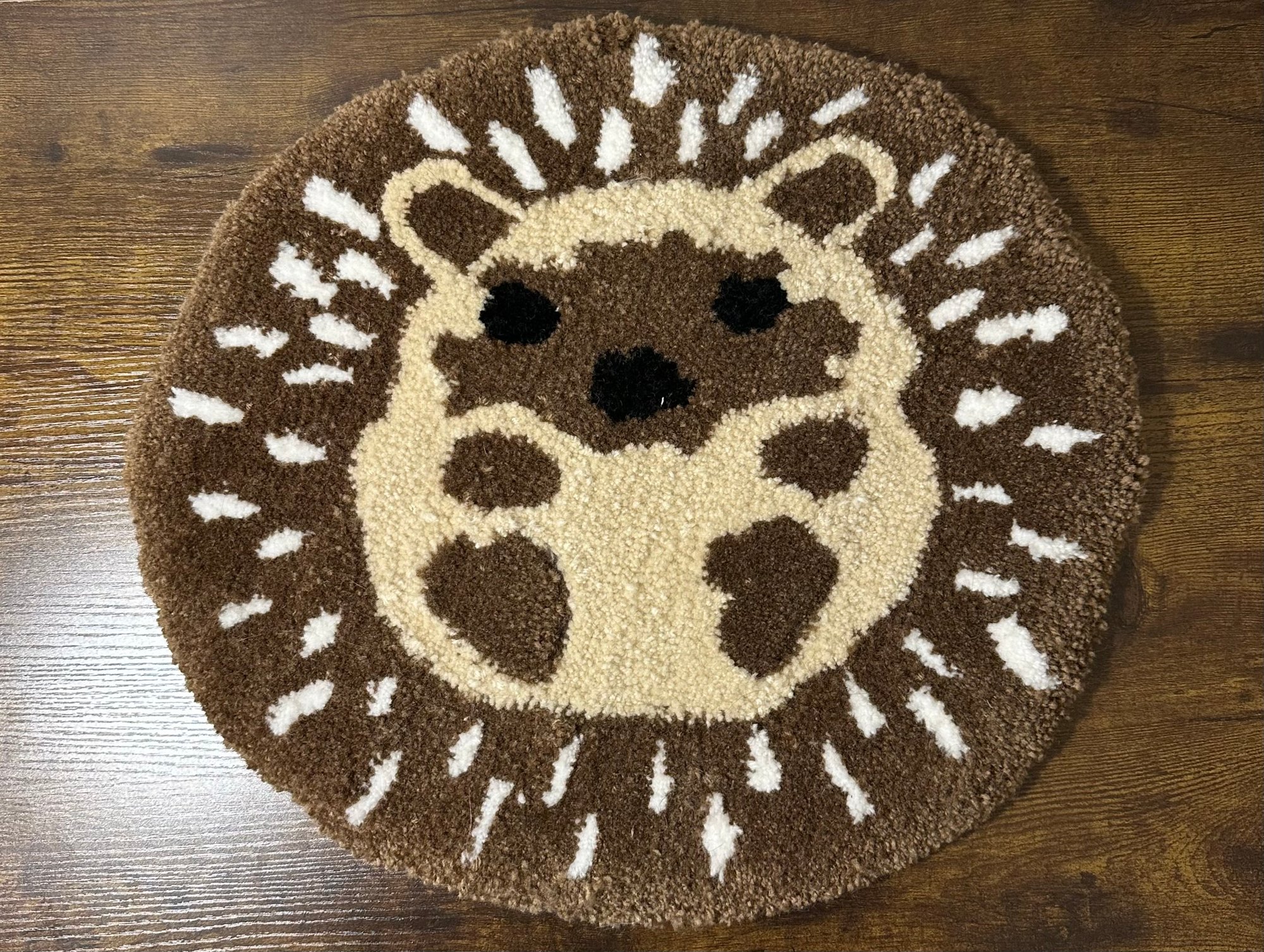 100% hand-tufted rug and fiber art, crafted with premium acrylic yarn and tufting fabric. To care for this item, use a dry vacuum for cleaning and avoid using a wet vacuum. For stains, spot clean only and do not put in the washing machine. Please note that this item is for decorative use only and not recommended for high-traffic areas or as a door mat. Approximately 15.5”x17.5”