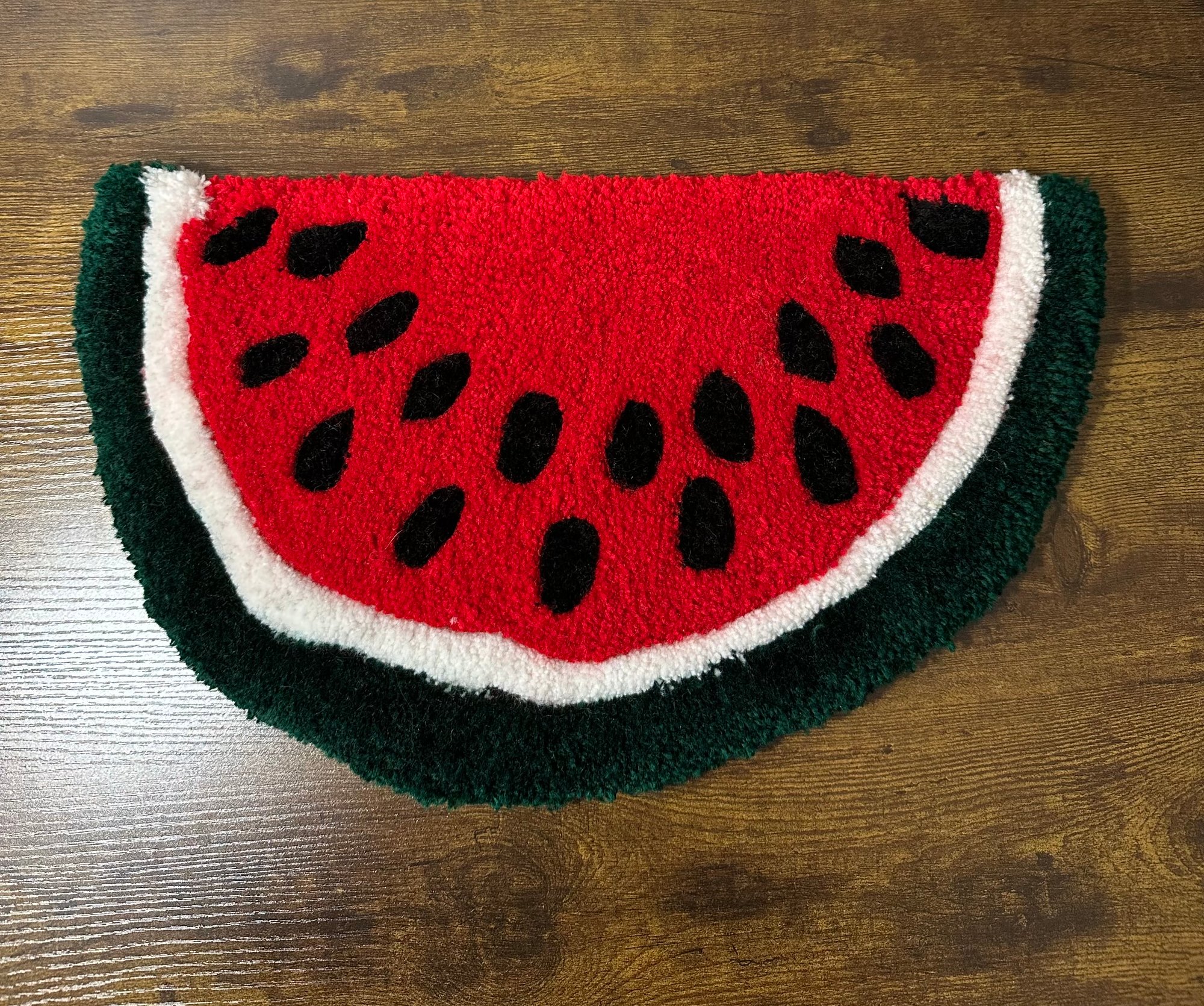 100% hand-tufted rug and fiber art, crafted with premium acrylic yarn and tufting fabric. To care for this item, use a dry vacuum for cleaning and avoid using a wet vacuum. For stains, spot clean only and do not put in the washing machine. Please note that this item is for decorative use only and not recommended for high-traffic areas or as a door mat. Approximately 10”x17”